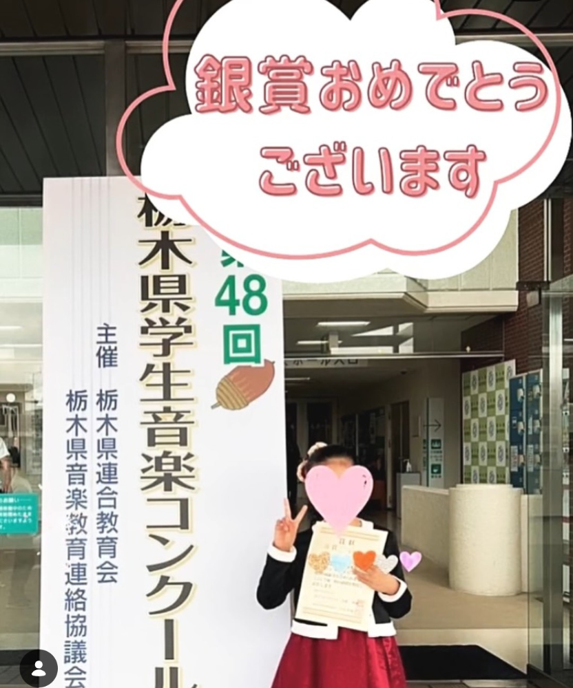 ✨栃木県学生コンクール🎹✨ピアノ部門で銀賞を頂いてきました❣️曲を取り組む中で沢山の成長が見られました🥰すごくレベルアップしたのでこれからの成長がますます楽しみです🏆️おめでとうございます!!頑張りましたね💮
